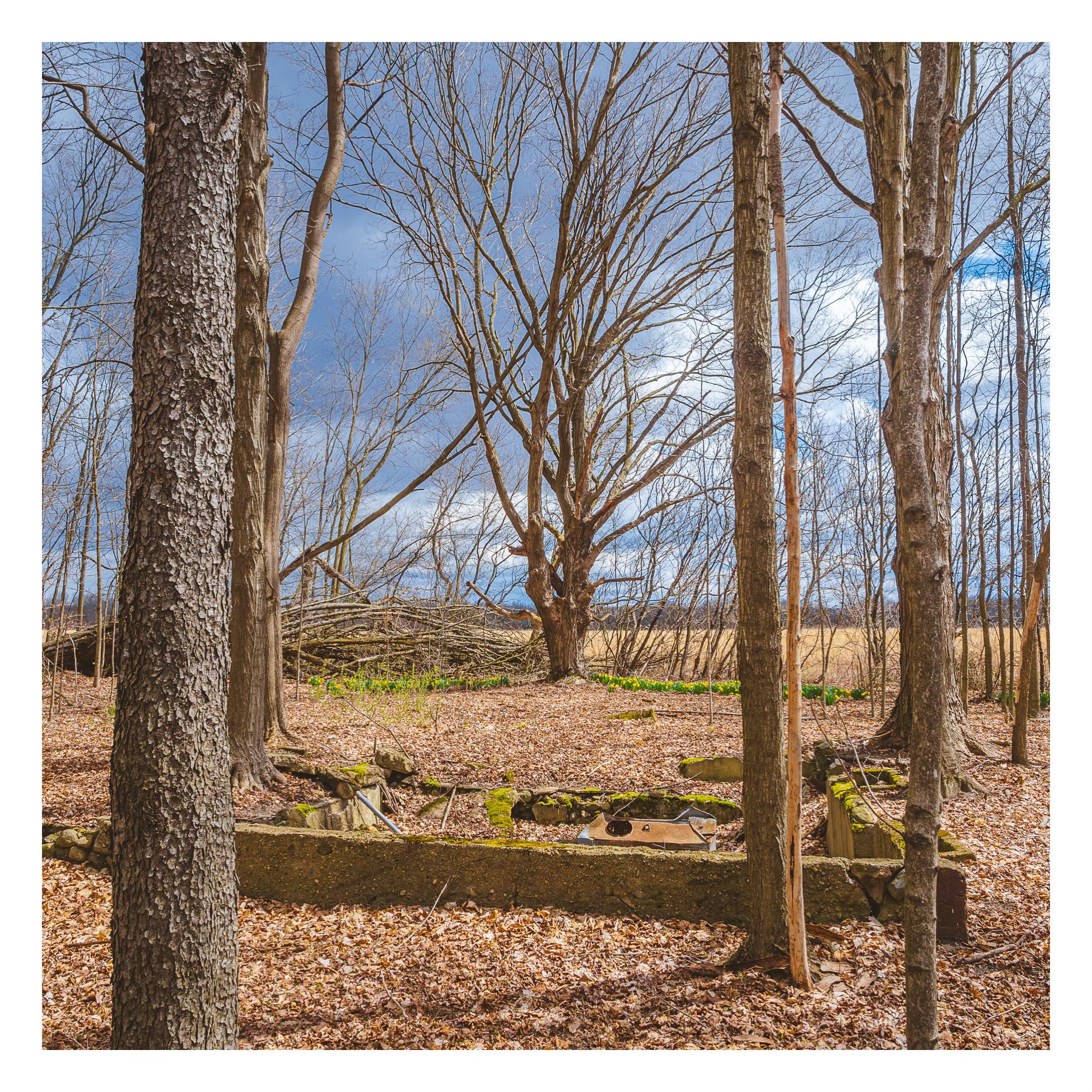 Out there on the back side of the old foundation, away from the old road, in a thick row on either side of a hundred-year-old sugar maple, is a vibrant set of daffodils, green and yellow-bright bursts, a shock and surprise for the eyes among greys and browns and moody cloud-blues. I have to believe some loving, creative soul planted them fairly recently, but of course the impression is that these are the remains of a hundred-year-old garden. A living reminder of a forgotten family’s backyard a hundred or more springs ago. A lesson in anonymously leaving beauty for others to find.