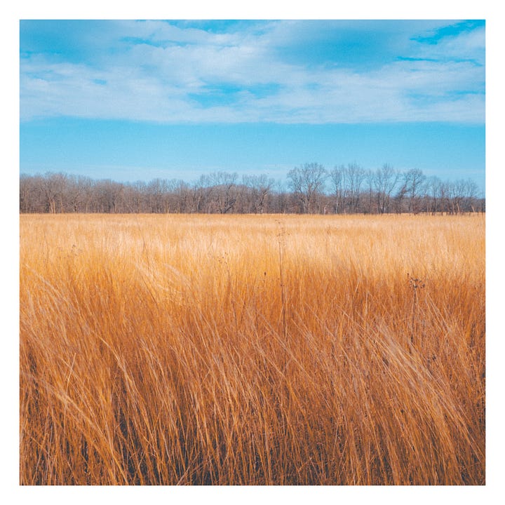 After the trail turns away from the river, a coyote emerges from the stiff, golden prairie grass, gaze fixed on me from 50 yards away, never breaking stride, melting into the understory of the windbreak treeline. He or she saw me first, and my gaze struggles to catch up as I side-step to follow, too late for anything to register as a mutual recognition. I would have welcomed that, but the coyote declined to form any kind of connection, however brief.
